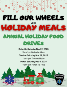 CUPE 1842 is proud to once again partner with Hastings–Quinte Paramedic Services for our annual “Fill Our Wheels With Holiday Meals” food drive campaign. Each year, our members join together to support families across our region who are experiencing food insecurity during the holiday season — and 2025 is no different.